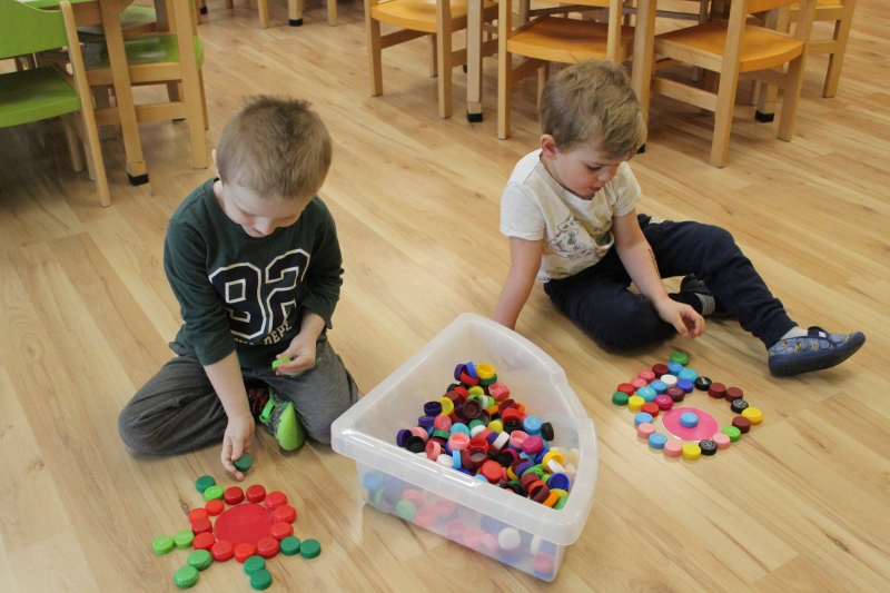 Velké děti počítaly a přiřazovaly PET víčka, určovaly, co je horké a co studené, dokreslovaly sluníčka, měly hodinu psaní, procvičovaly logické myšlení. Malé děti řadily květiny podle velikosti, z PET víček a také z geometrických tvarů vytvářely květiny, sluníčkům dotvářely paprsky z kolíčků, hledaly rozdíly mezi dvěma obrázky. Společně děti hrály mnoho pohybových her, tvořily květiny z různých stavebnic a pomůcek, poznávaly stíny, a samozřejmě si hrály.