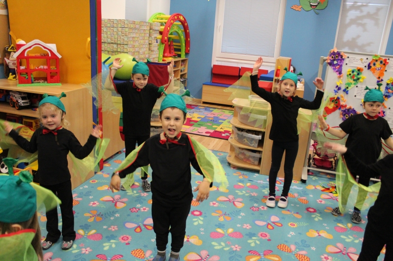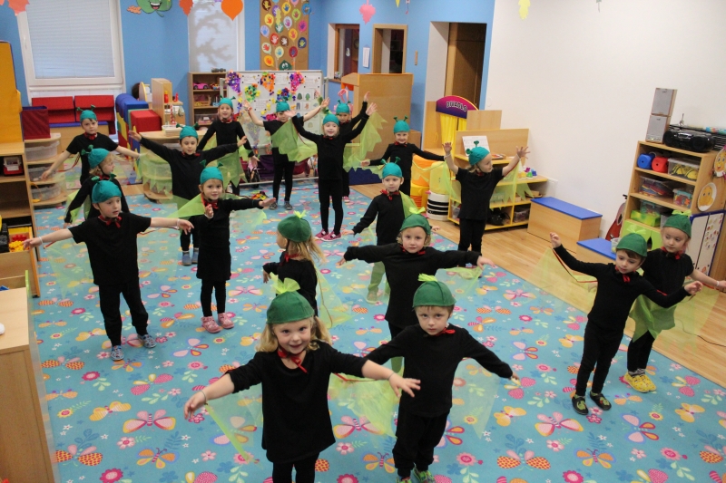 Děti s rodiči vyrobily draky do soutěže o nejkrásnějšího draka, připravily si vystoupení „Přiletěli draci“ a na konec předškoláci zahráli pohádku „Draka bolí zub“. Na závěr jsme vyhodnotili nejkrásnější draky. Nechybělo ani dobré pohoštění.