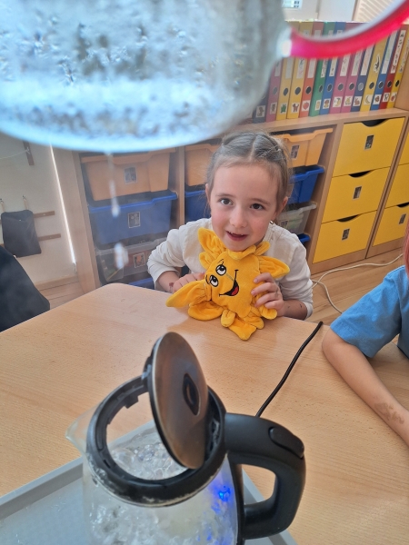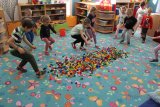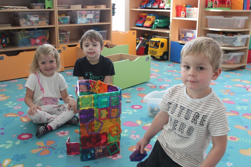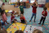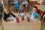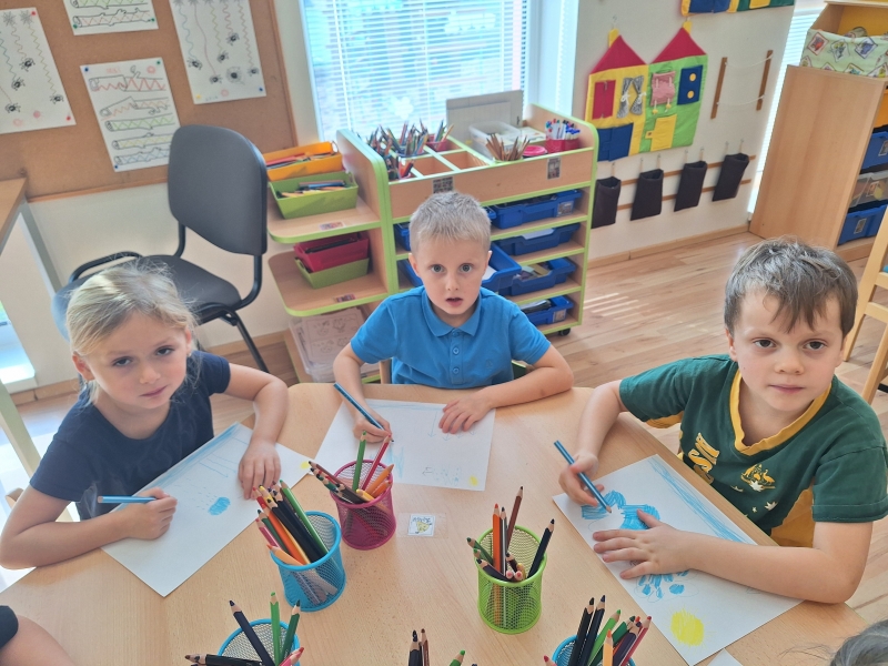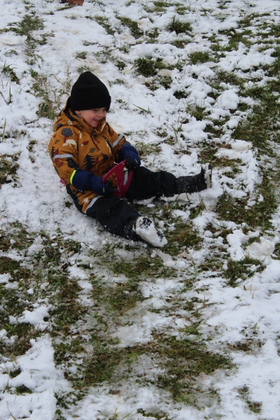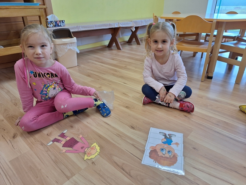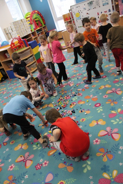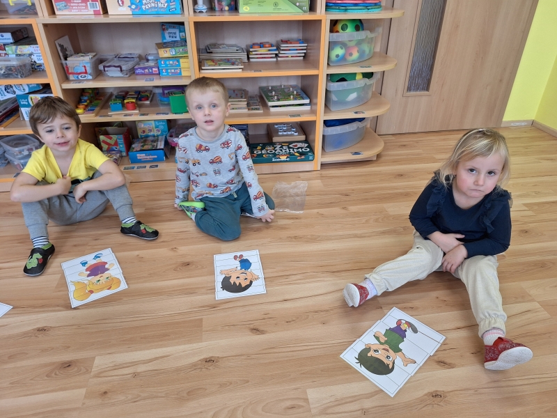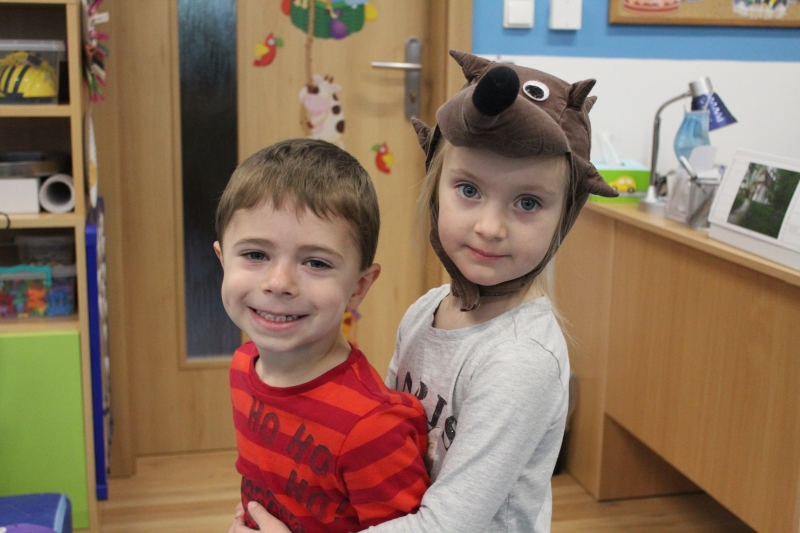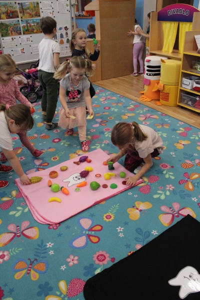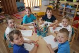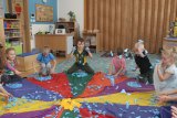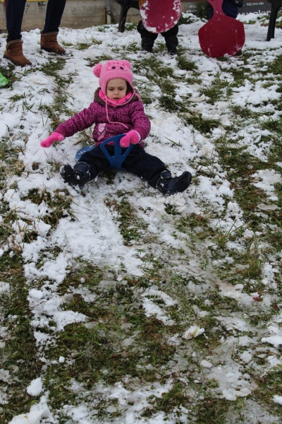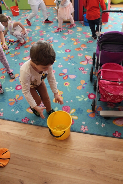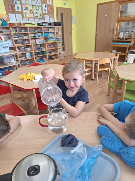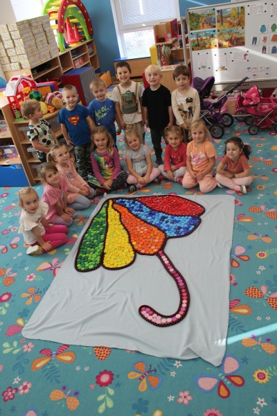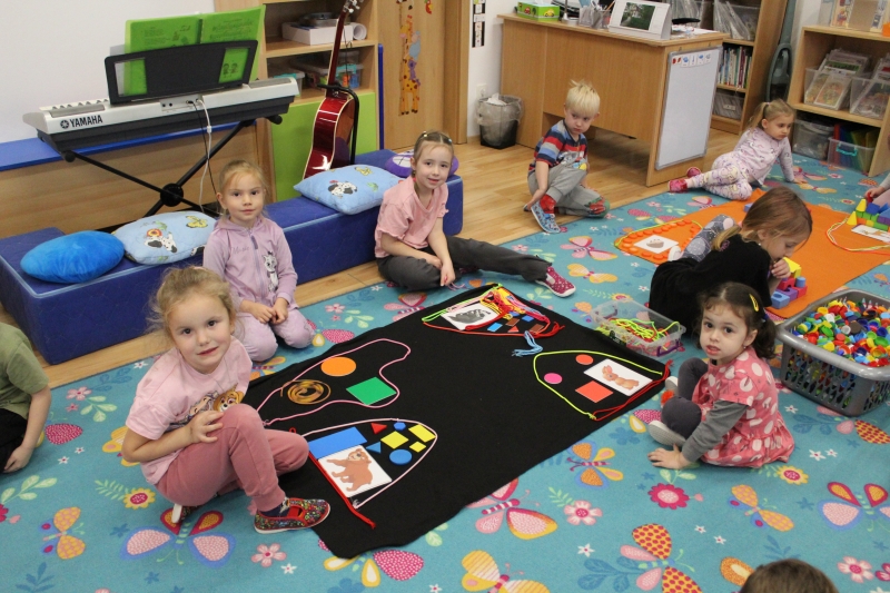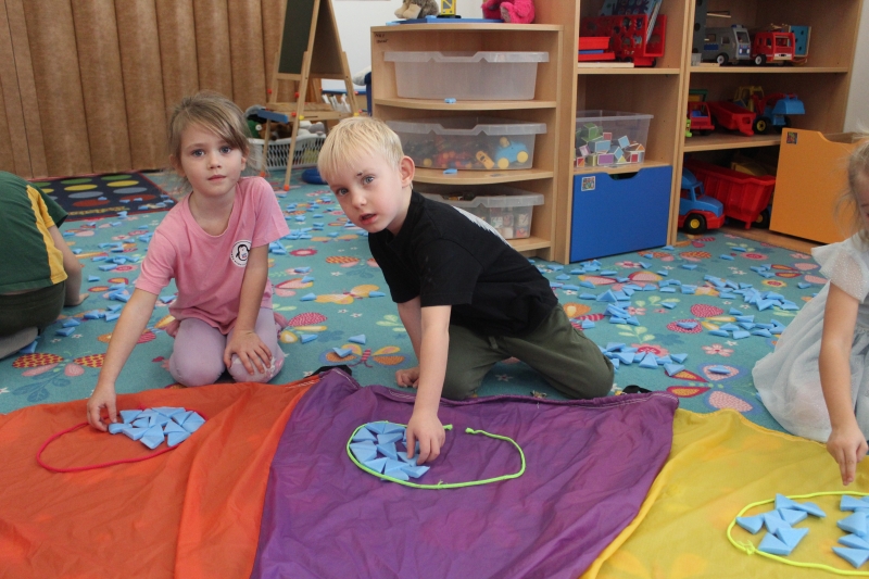 Malé děti plnily mráčky kapičkami, vytvořily z PET víček deštník, foukaly do míčku, skládaly puzzle. Velké děti foukaly do míčku a trefovaly se do branky, hrály hry s padákem, dělaly pokus s vodou, měly hodinu psaní, složily z různých stavebnic kamaráda. Společně děti hrály mnoho pohybových her, plnily několik jednodušších či složitějších úkolů a samozřejmě si jen tak hrály. Koncem listopadu napadl sníh a děti dováděly na kopci u školky. Do školky jsme zakoupili rautové stolky, které byly financovány společností Vild Art. Moc děkujeme.