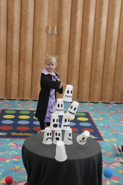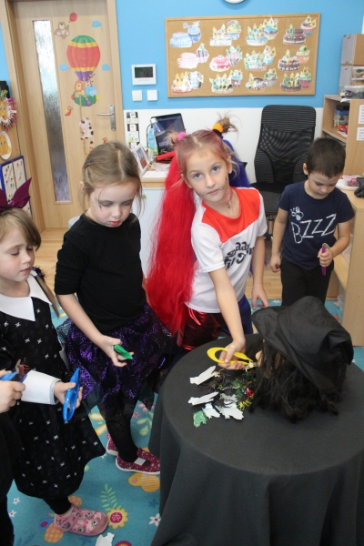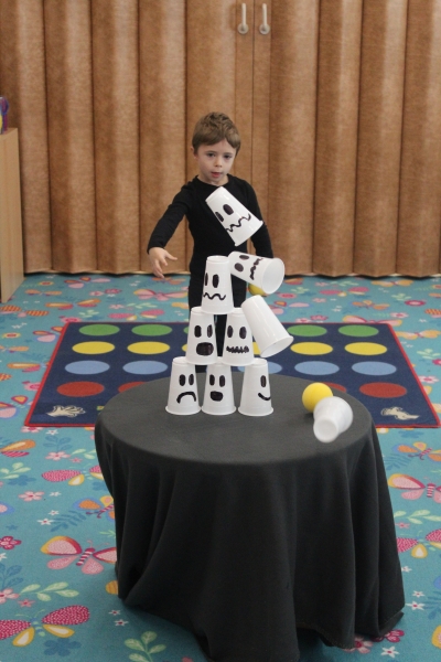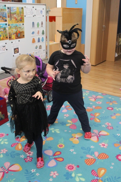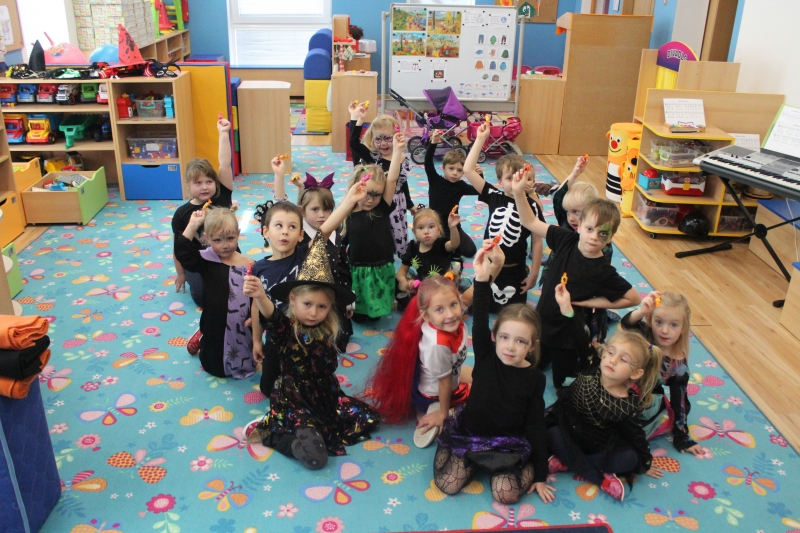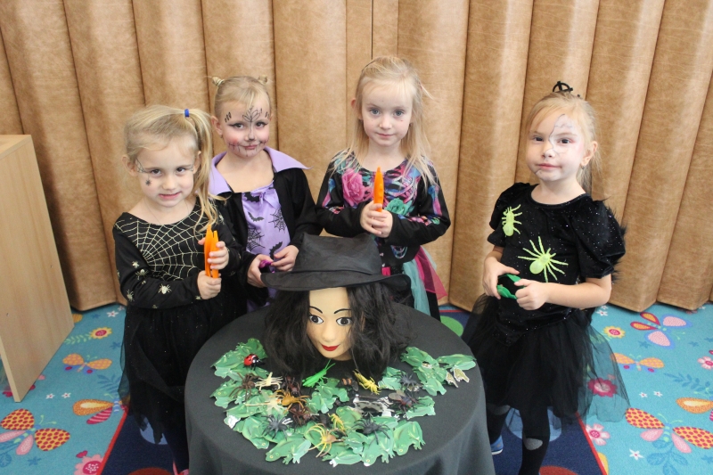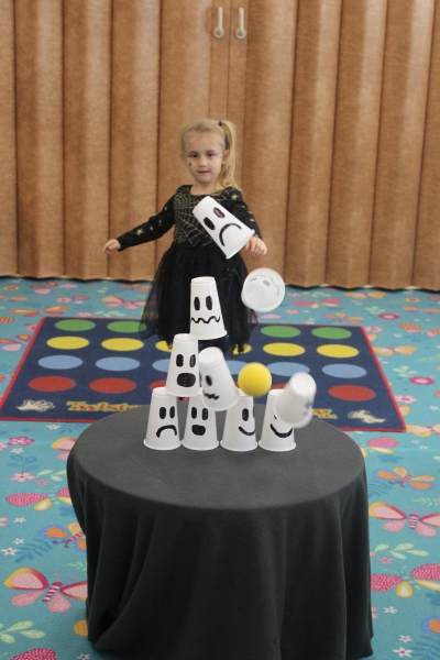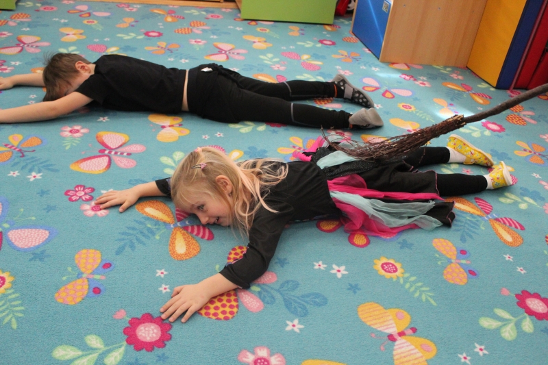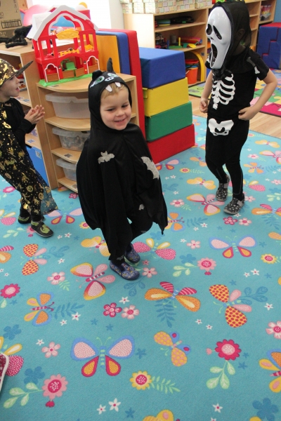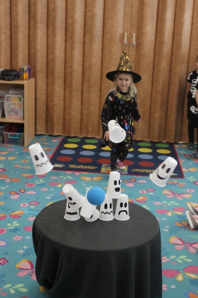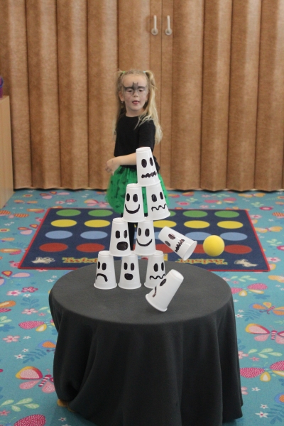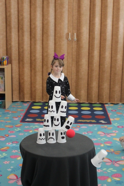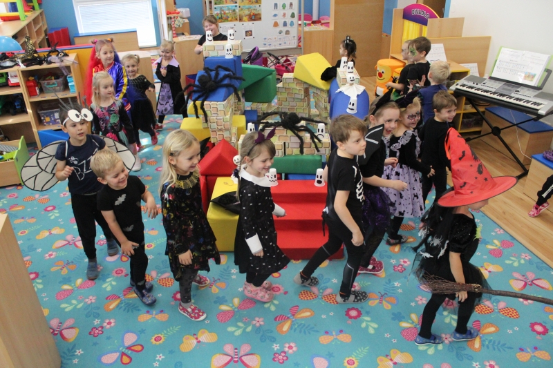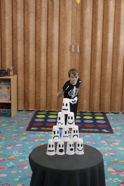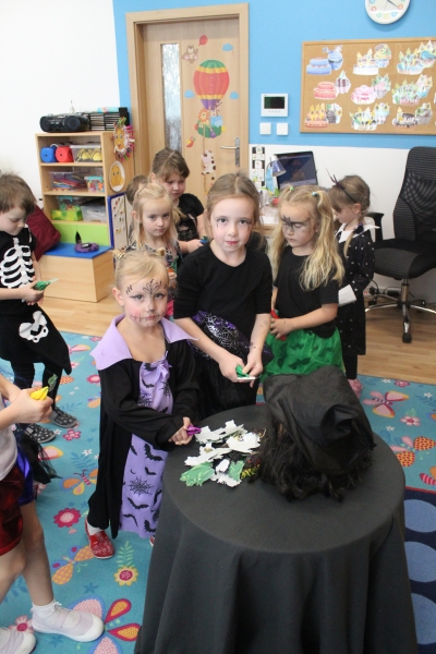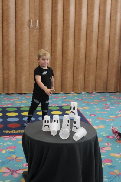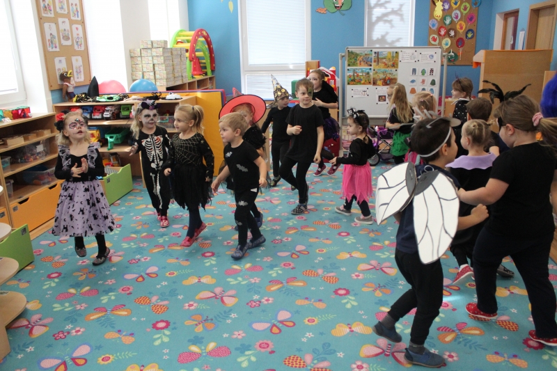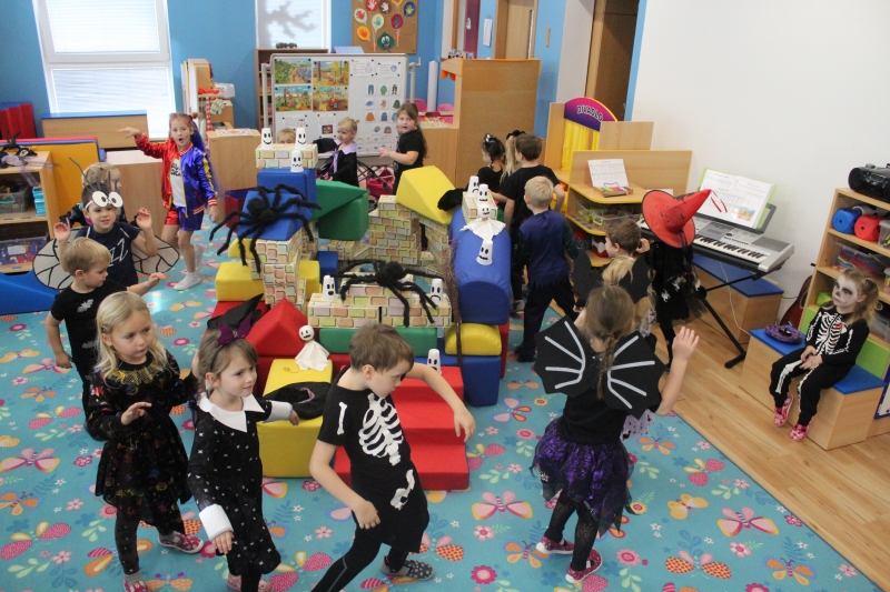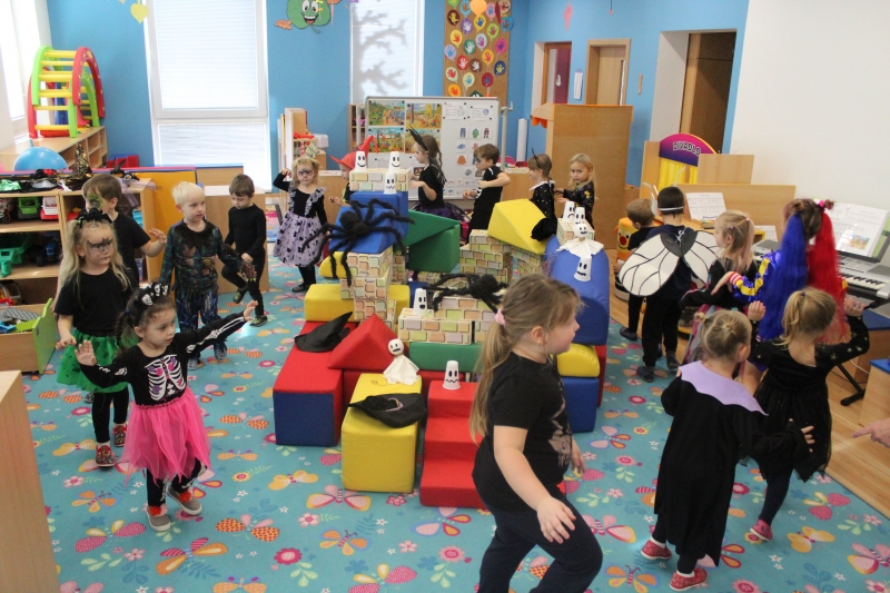 Děti v bubáčkovských maskách hrály mnoho pohybových her, postavily strašidelný hrad, krmily čarodějnici, trefovaly se do kelímkových duchů. Na závěr strašidelného dopoledne si každý našel sladkou odměnu.