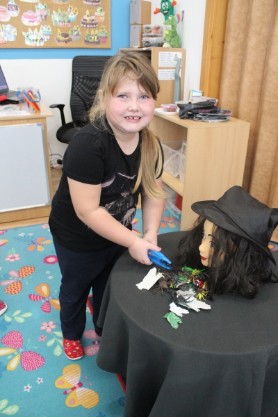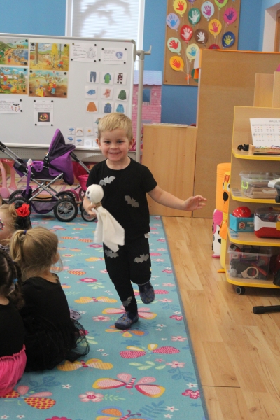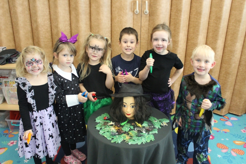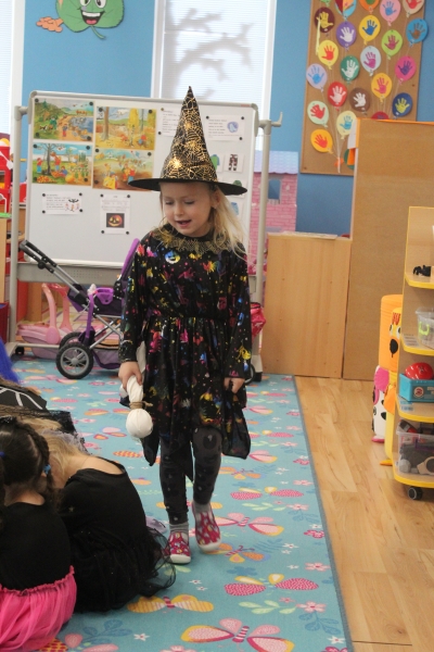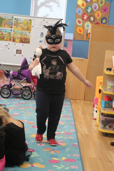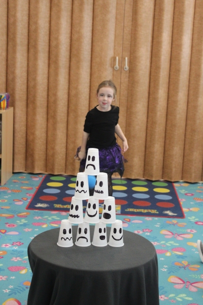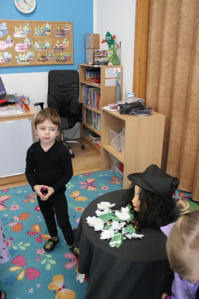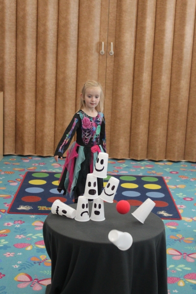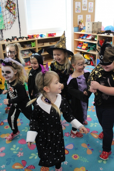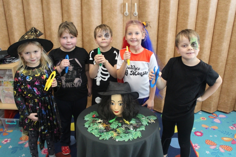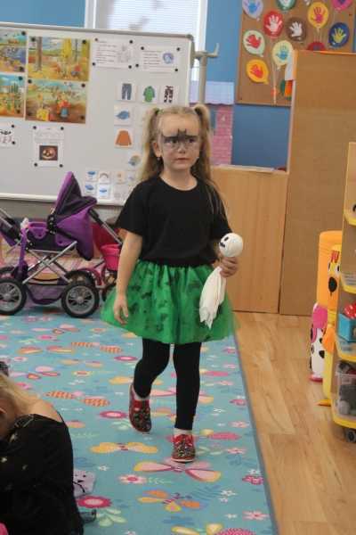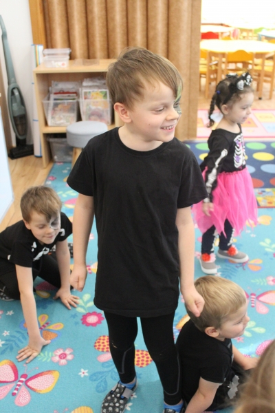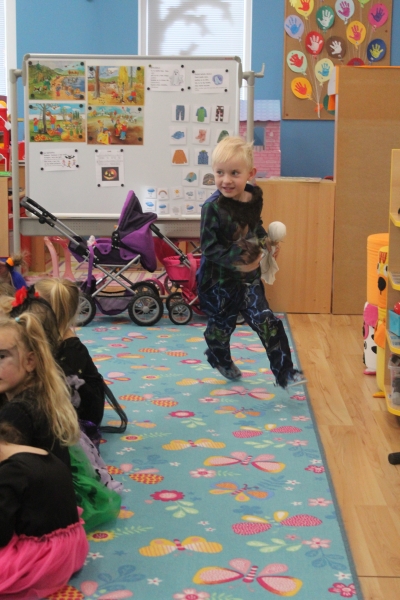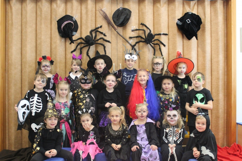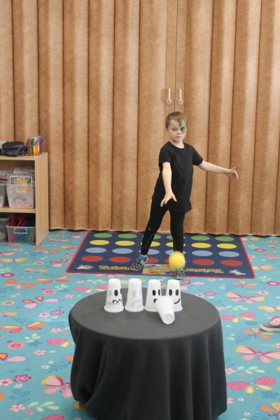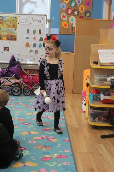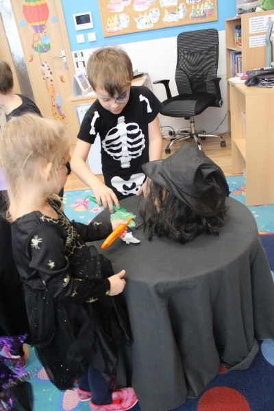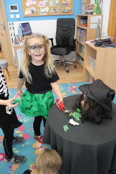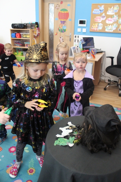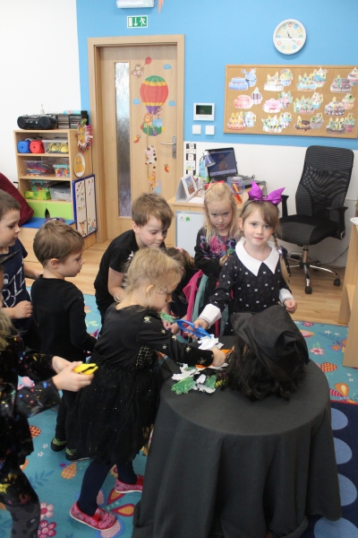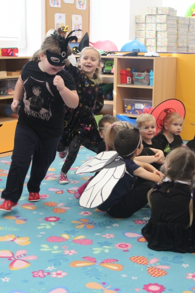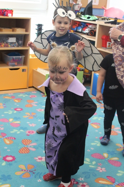 Děti v bubáčkovských maskách hrály mnoho pohybových her, postavily strašidelný hrad, krmily čarodějnici, trefovaly se do kelímkových duchů. Na závěr strašidelného dopoledne si každý našel sladkou odměnu.