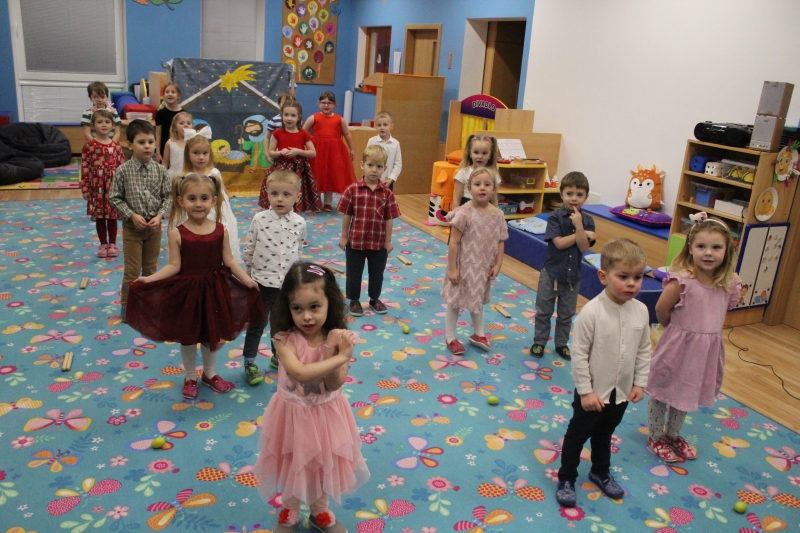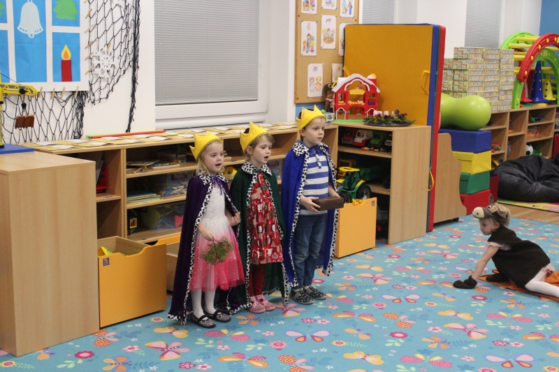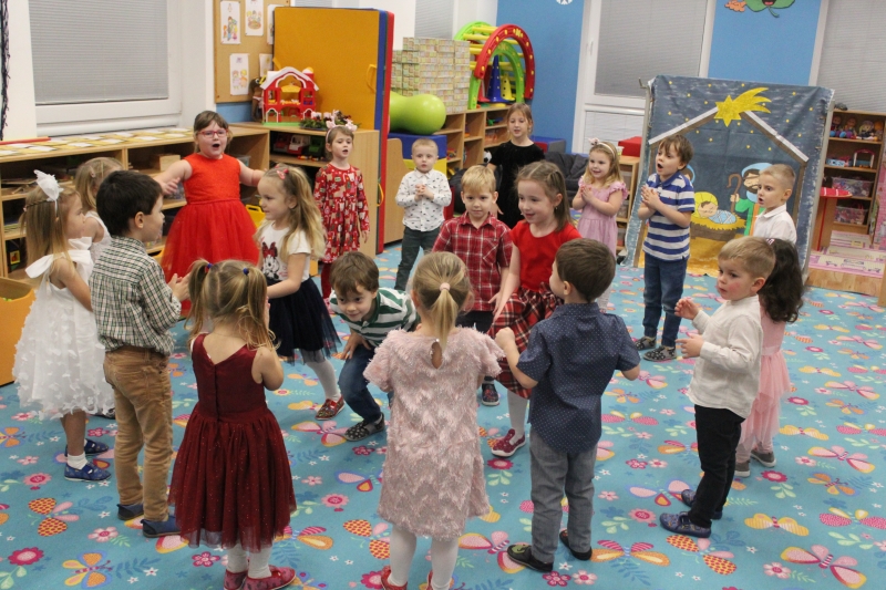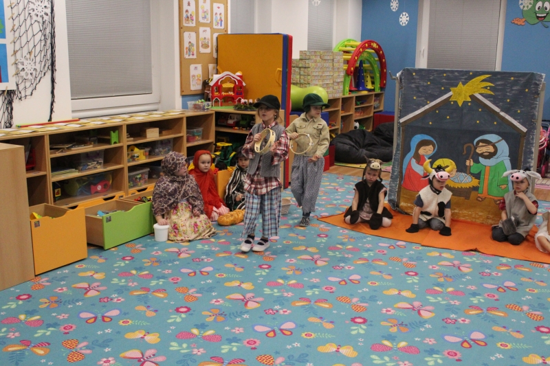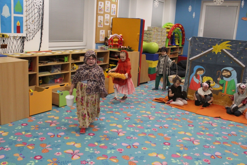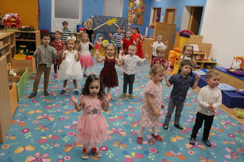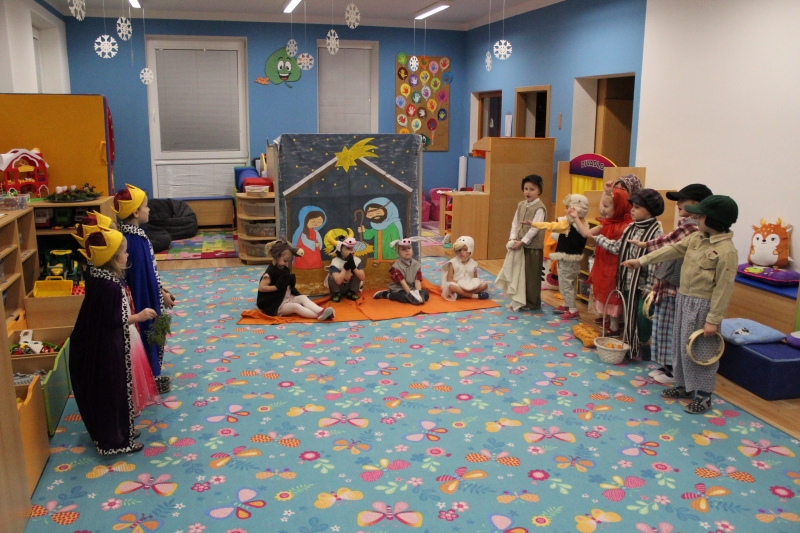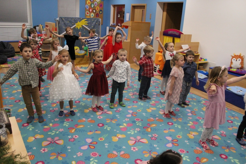 Děti rodičům zarecitovaly několik básniček, zazpívaly vánoční písničky a koledy a zatancovaly taneček „Jsou tu Vánoce“. Předškoláci zahráli „Vánoční příběh“. Na závěr našeho vánočního setkání děti společně s rodiči vyrobily točené svíčky a svíčky odlité z forem.