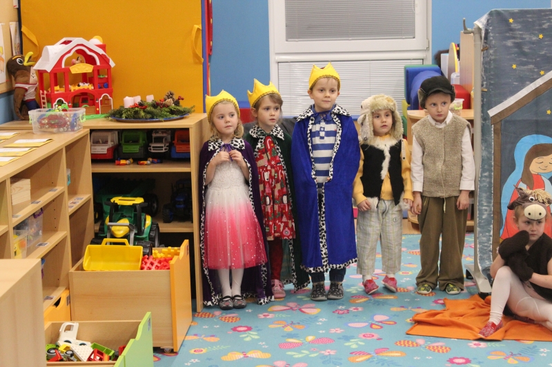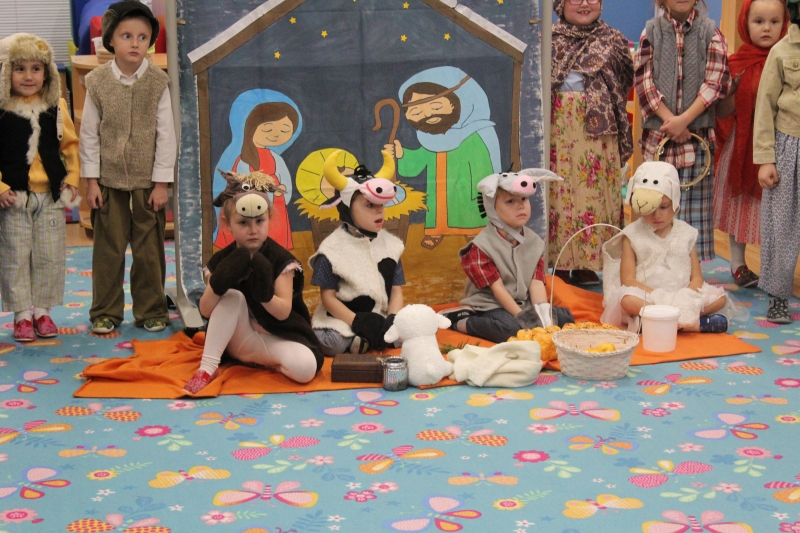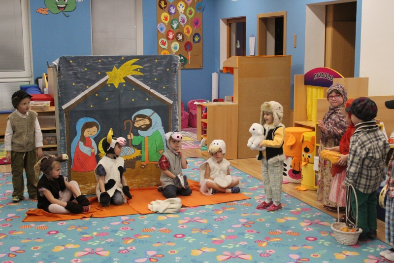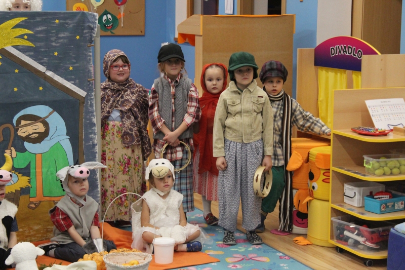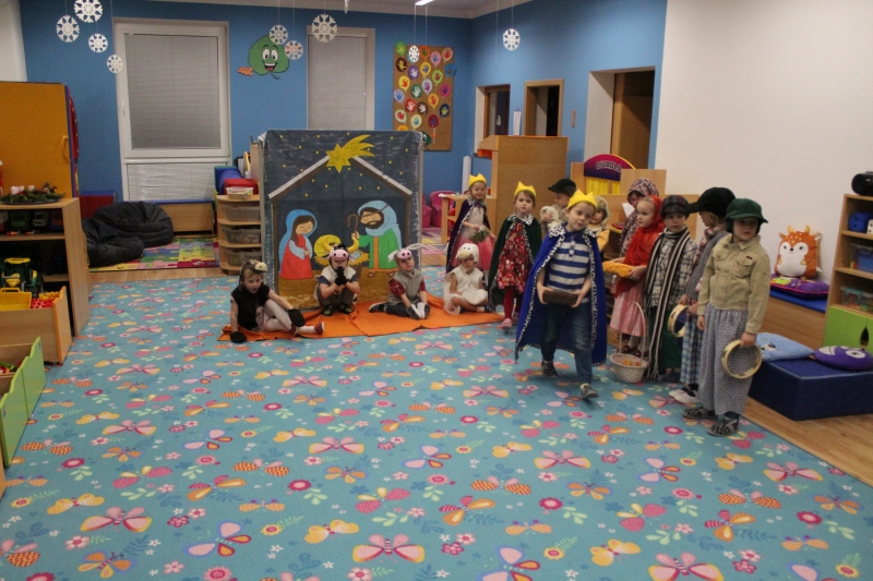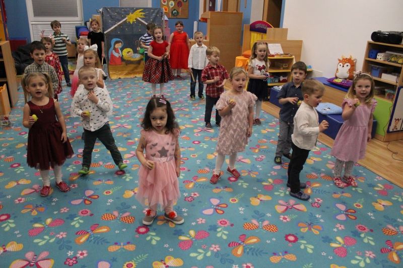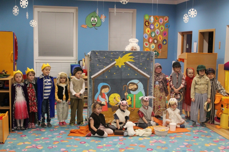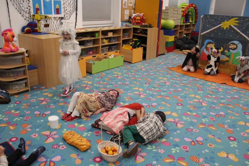 Děti rodičům zarecitovaly několik básniček, zazpívaly vánoční písničky a koledy a zatancovaly taneček „Jsou tu Vánoce“. Předškoláci zahráli „Vánoční příběh“. Na závěr našeho vánočního setkání děti společně s rodiči vyrobily točené svíčky a svíčky odlité z forem.