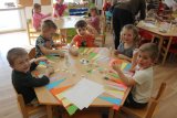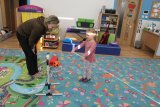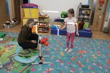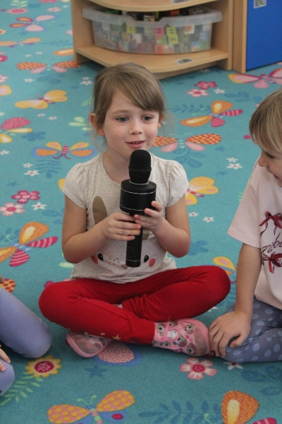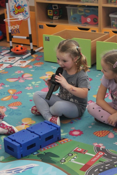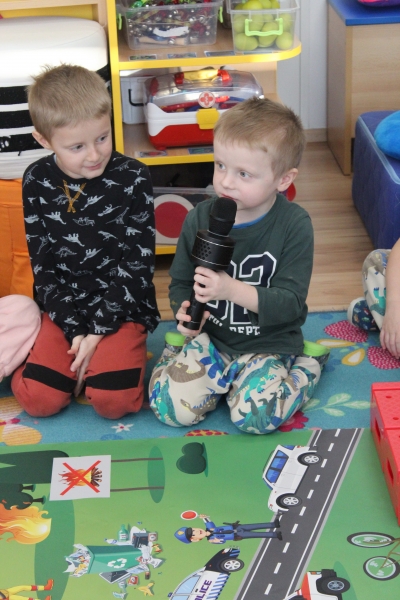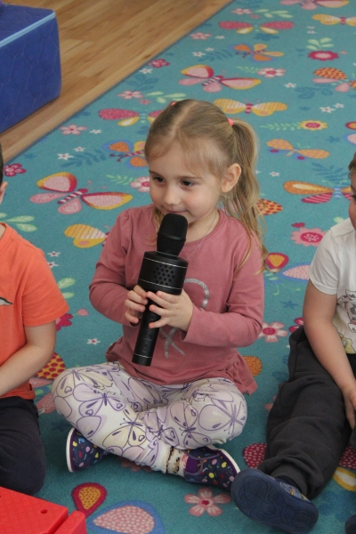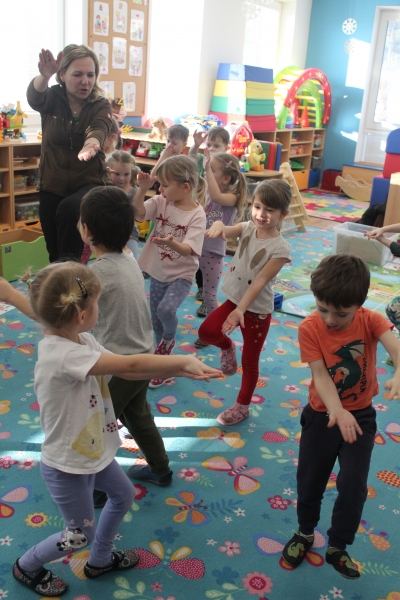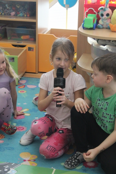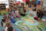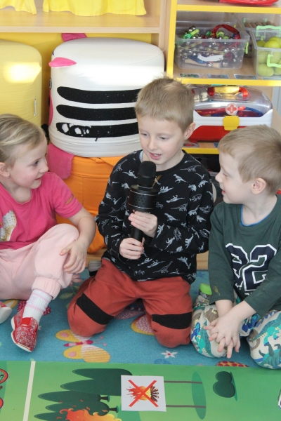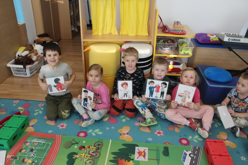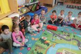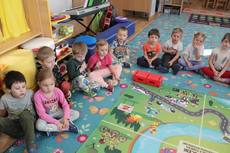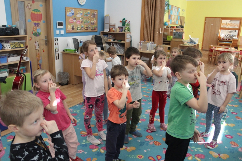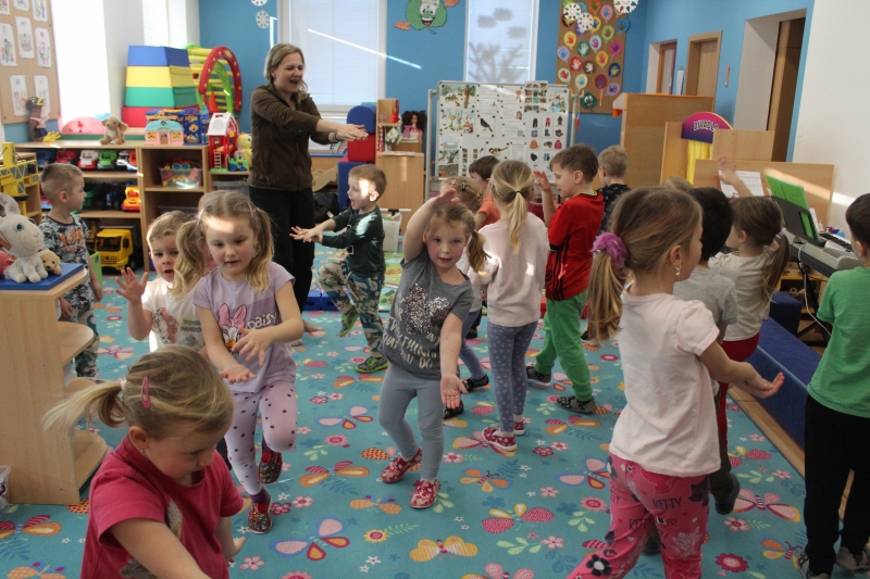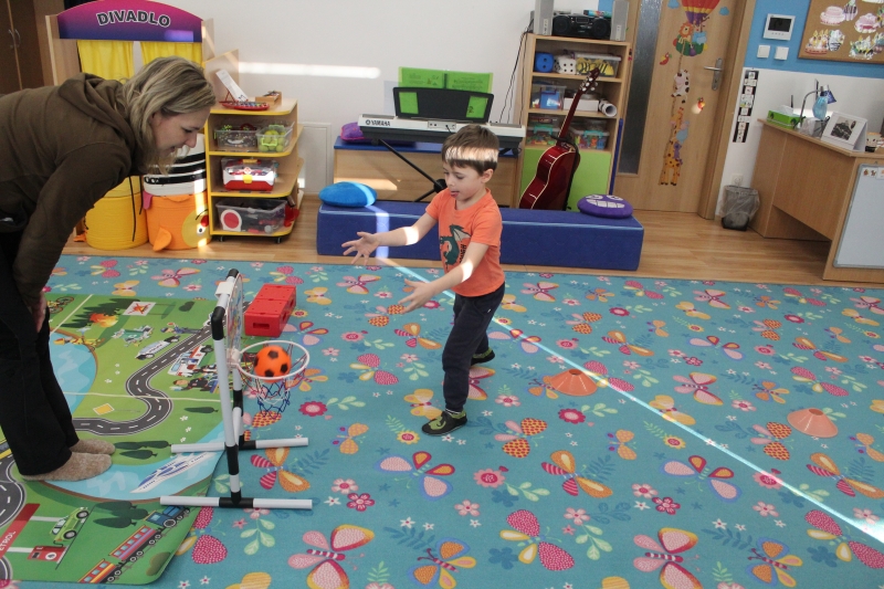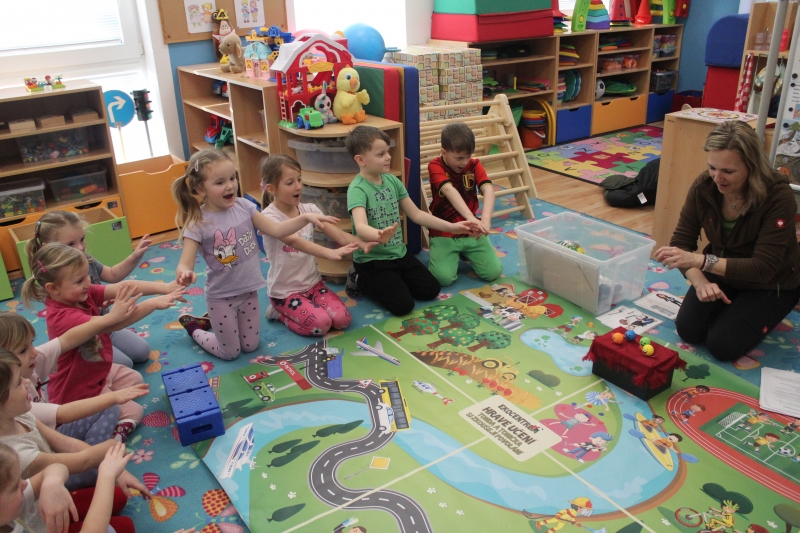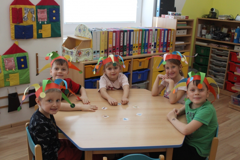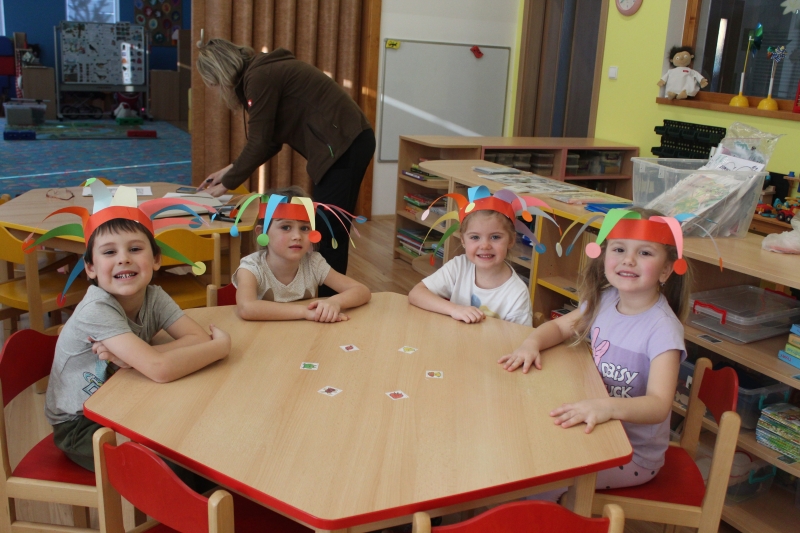 V polovině ledna do školky přijela lektorka z Ekocentra „Čapí hnízdo“ s výukovým programem „Tonda a Tonička zkouší různá povolání“. Tentokrát nám povídala o zábavě. Děti nejprve třídily obrázky a rozhodovaly o tom, které patří ke kultuře, ke sportu a jaké řemeslo představují. Potom si vyzkoušely práci s mikrofonem, naučily se básničku „Čapí rodina“, použily zaklínadlo na kouzelnou krabičku, zahrály si košíkovou a hru „Na kominíka“. Na závěr si děti vyrobily klaunskou čepičku.