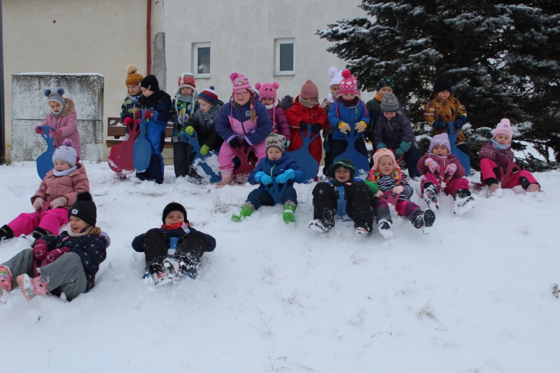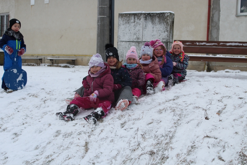 Na začátku ledna jsme ve školce přivítali novou kamarádku Toničku. Napadl sníh, a tak hurá na louku lopatovat. Společně si děti zahrály na tři krále a plnily několik královských úkolů. Hrály mnoho pohybových her, určovaly bzučákem délku rampouchů, dávaly rampouchy podle diktátu, chodily na vycházky a samozřejmě si hrály.