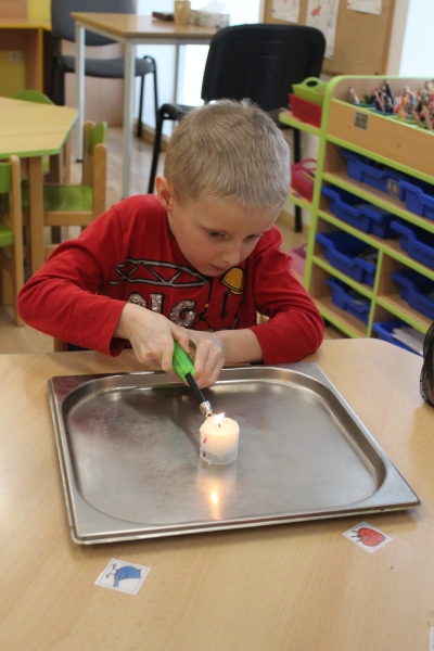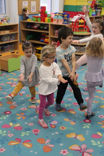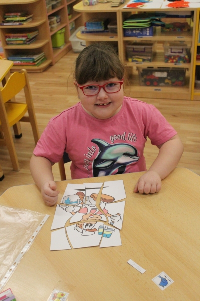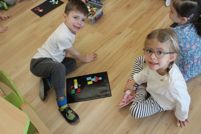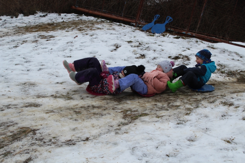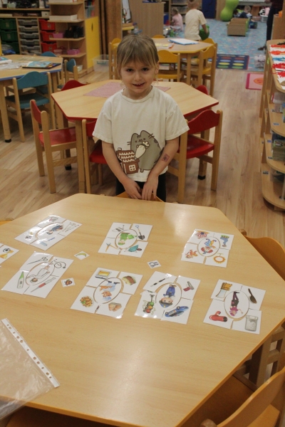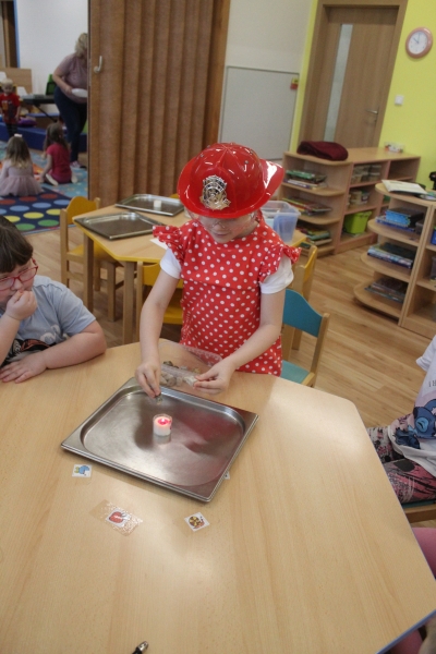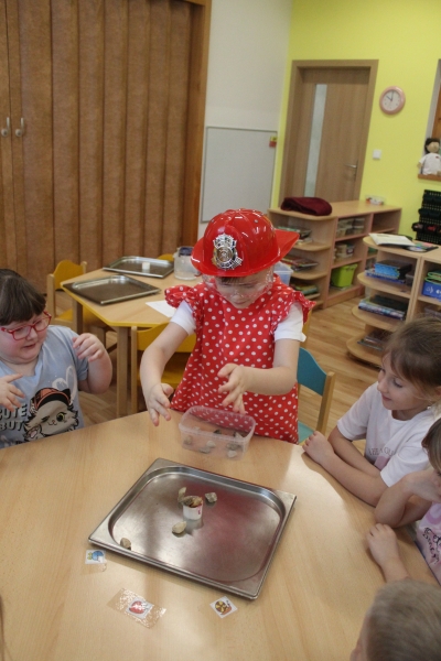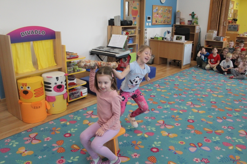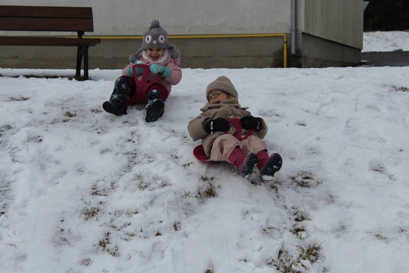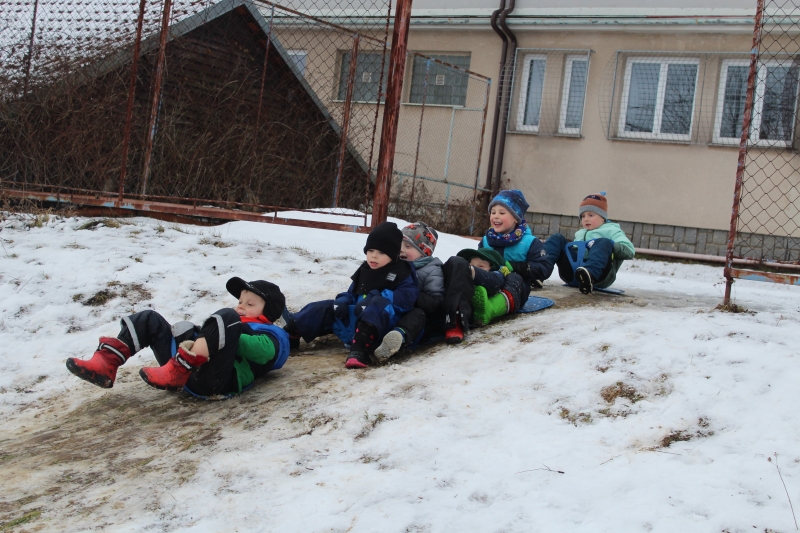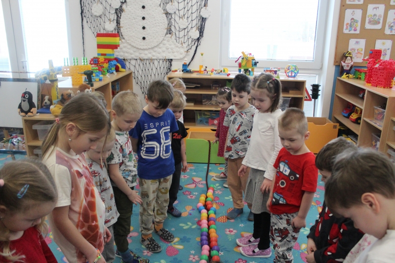 Malé děti přišívaly knoflíky, skládaly puzzle záchranářských vozů, přebíraly těstoviny, zdobily dort, skládaly panáčka z geometrických tvarů podle návodu, hledaly části obrázků, navlékaly korálky, hledaly stejné barvy a stejné obrázky. Velké děti za pomoci albi tužky plnily úkoly v knize „Kouzelné čtení“, skládaly puzzle – povolání, přiřazovaly k povolání pomůcky, které k němu patří, dělaly pokus, skládaly panáčka z geometrických tvarů, měly hodinu psaní, skládaly obrázky. Společně hrály mnoho pohybových her, hledaly věci stejné barvy, venku si užívaly sněhu a ve školce si samozřejmě hrály.
