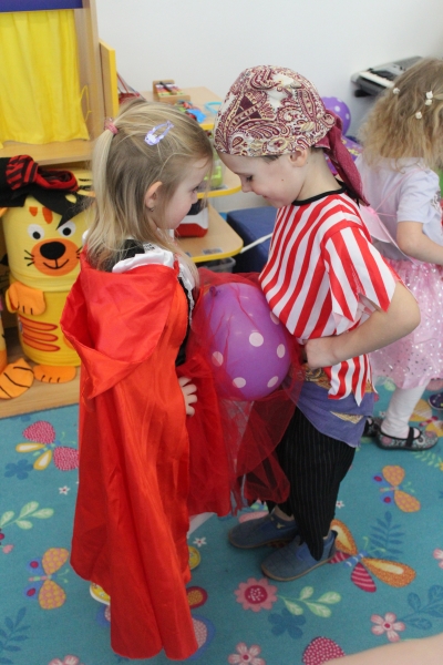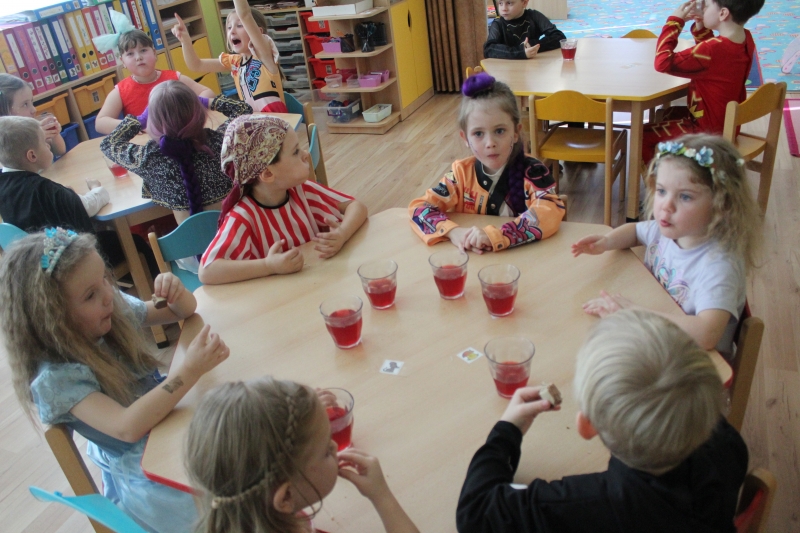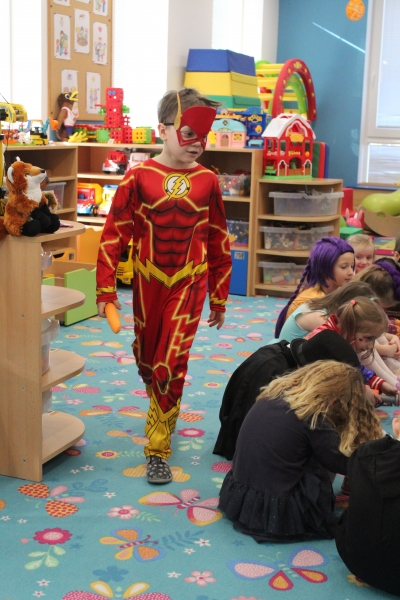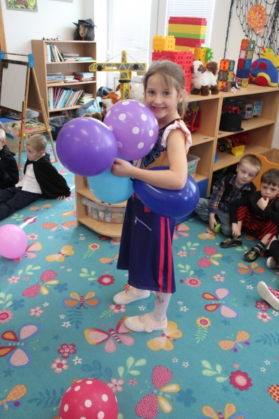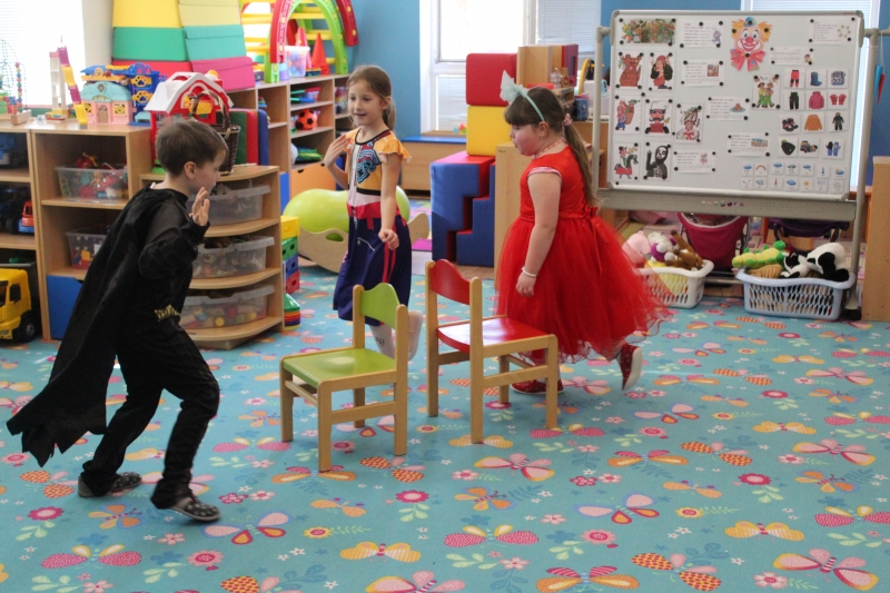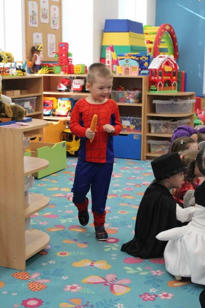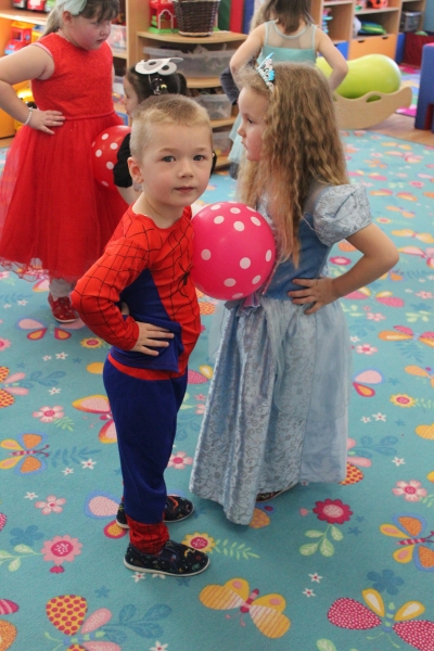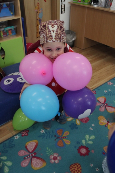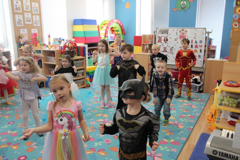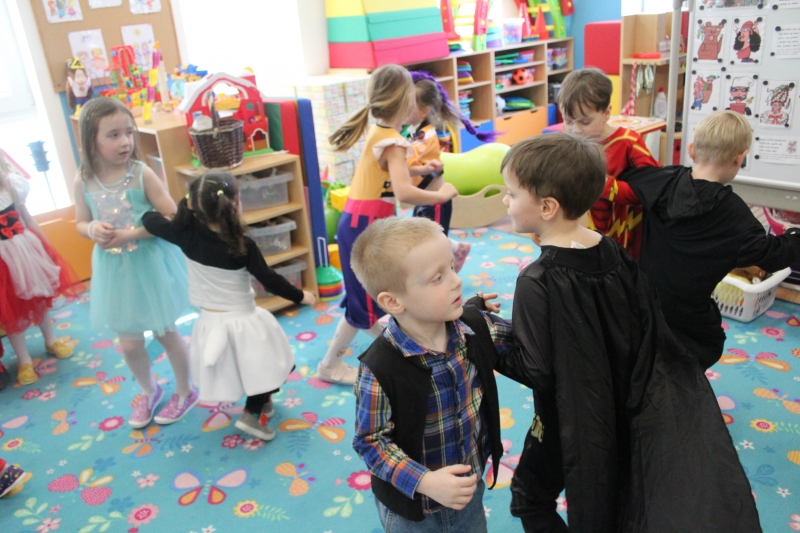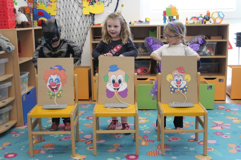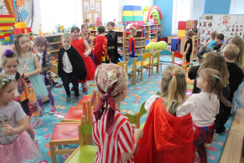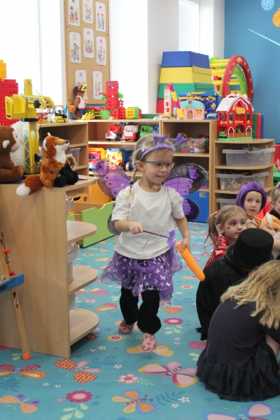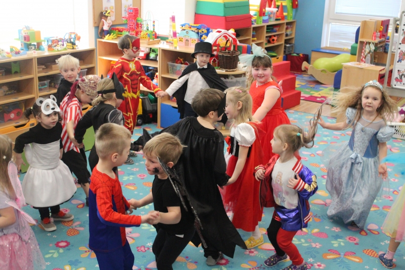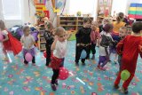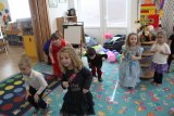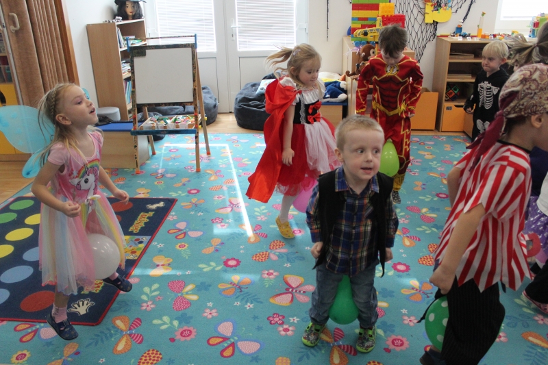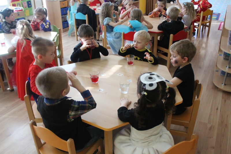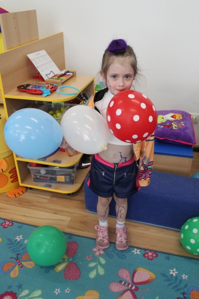 Na maškarní karneval přišly všechny děti v různých maskách. Děti zpívaly, dováděly a jedly dobroty. Hrály hru na medvěda, hry s míčky i s balonky, krmily klauna, tancovaly Labadu, Hoky koky a Ptačí tanec.