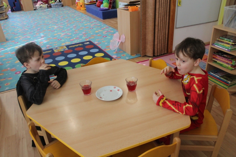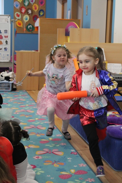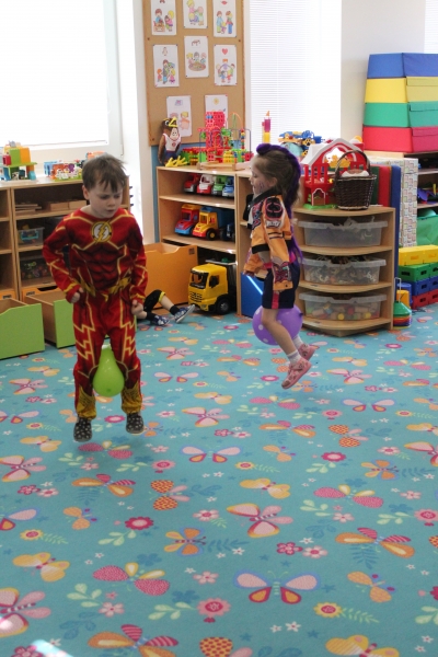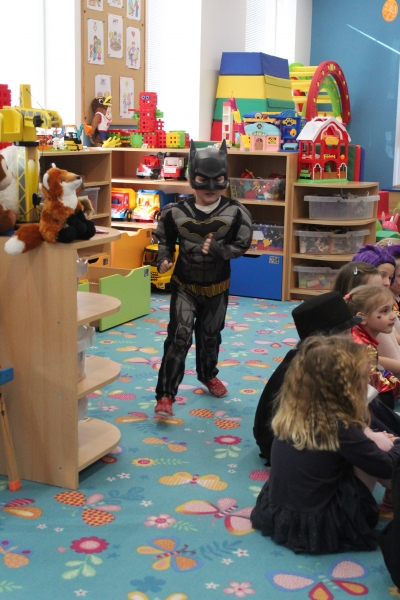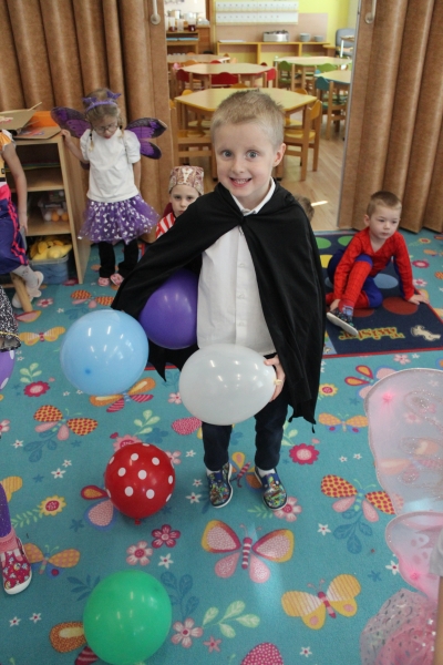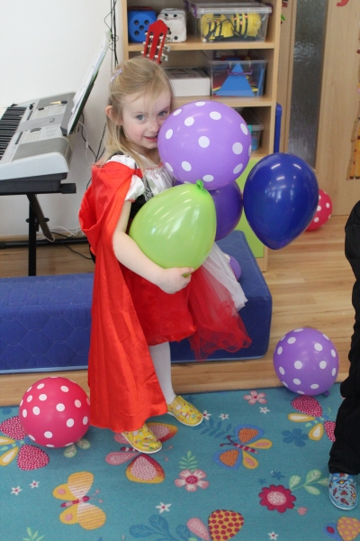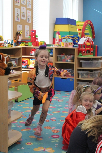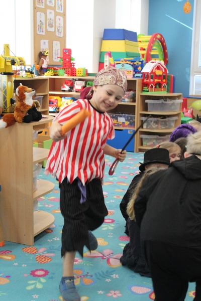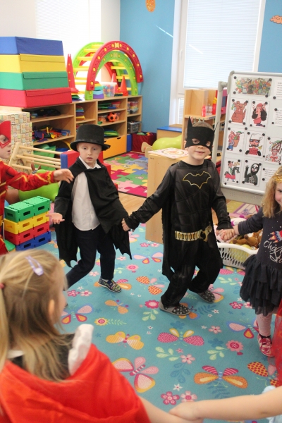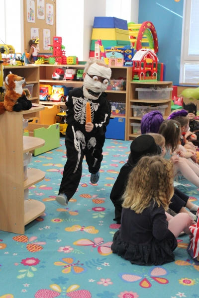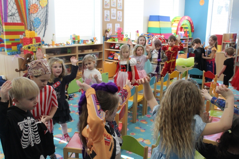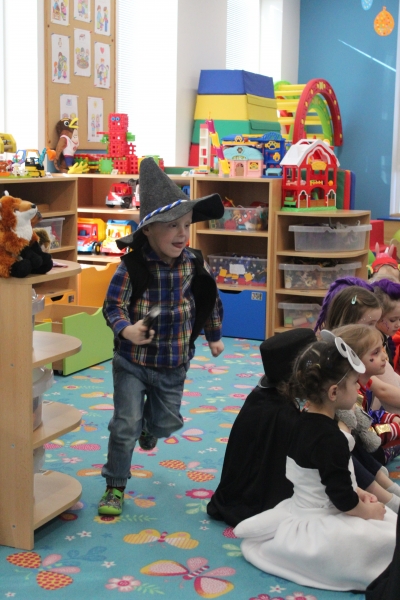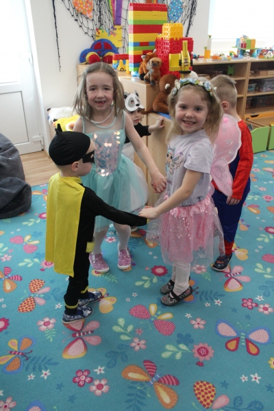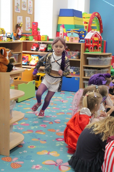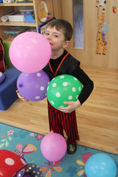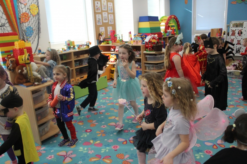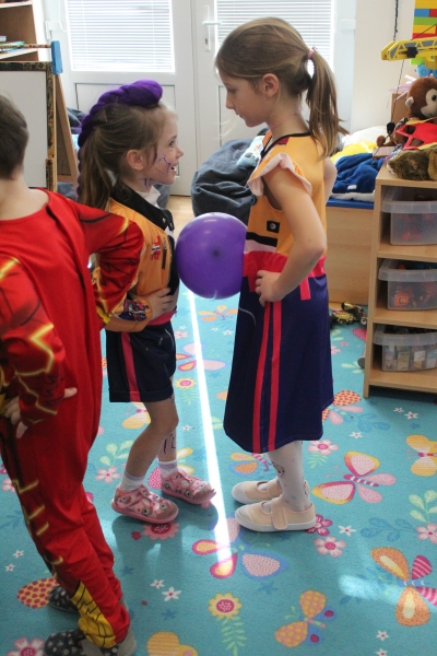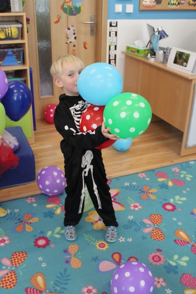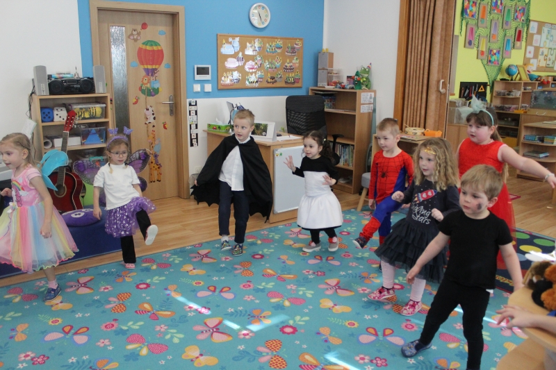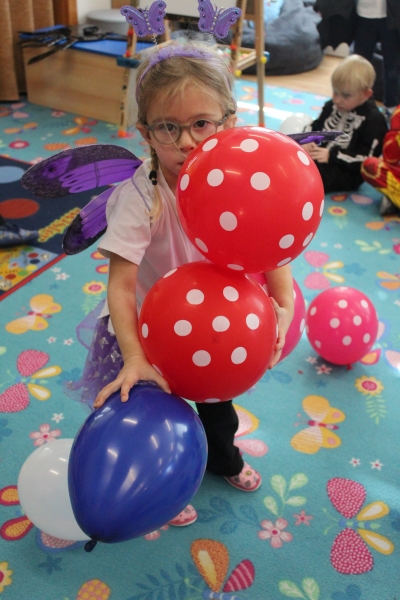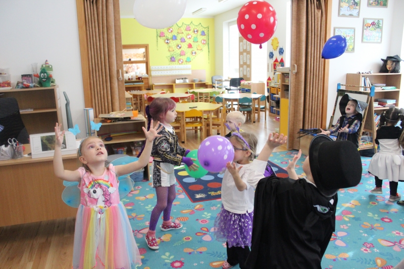 Na maškarní karneval přišly všechny děti v různých maskách. Děti zpívaly, dováděly a jedly dobroty. Hrály hru na medvěda, hry s míčky i s balonky, krmily klauna, tancovaly Labadu, Hoky koky a Ptačí tanec.