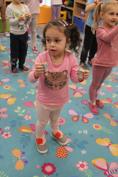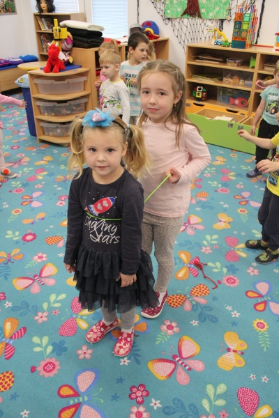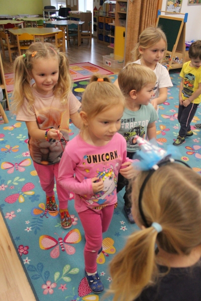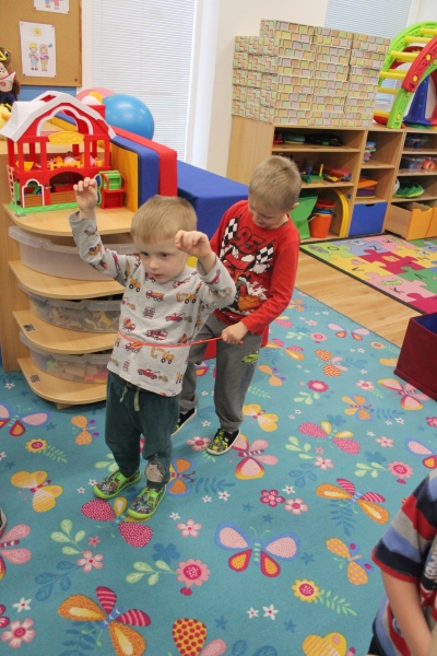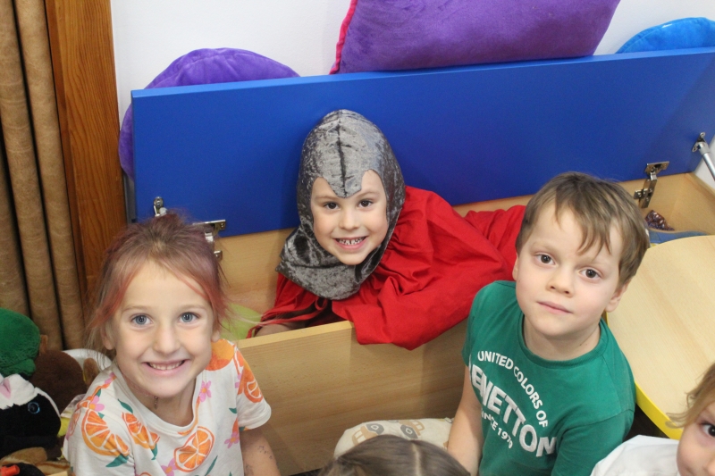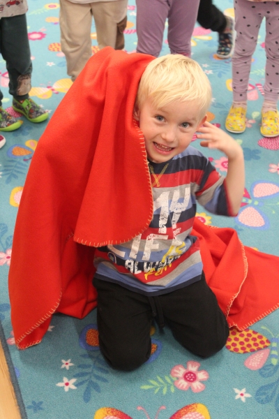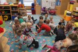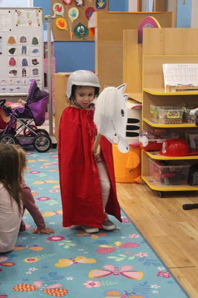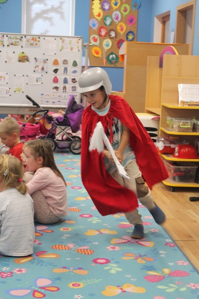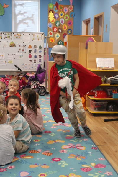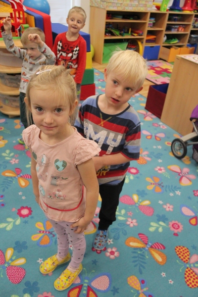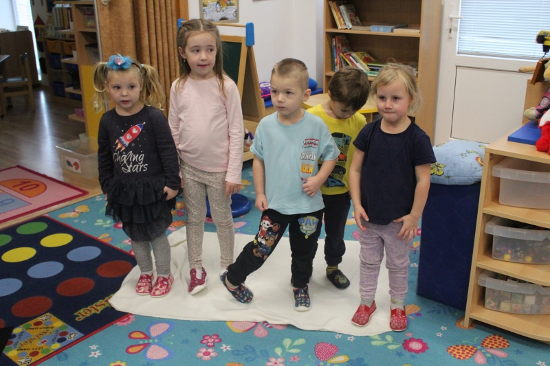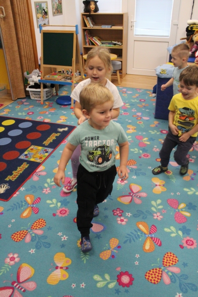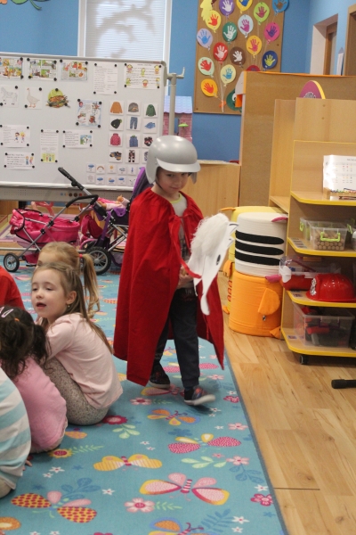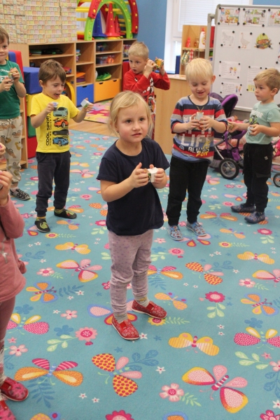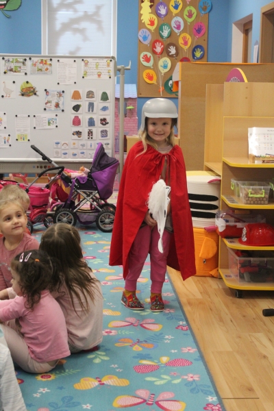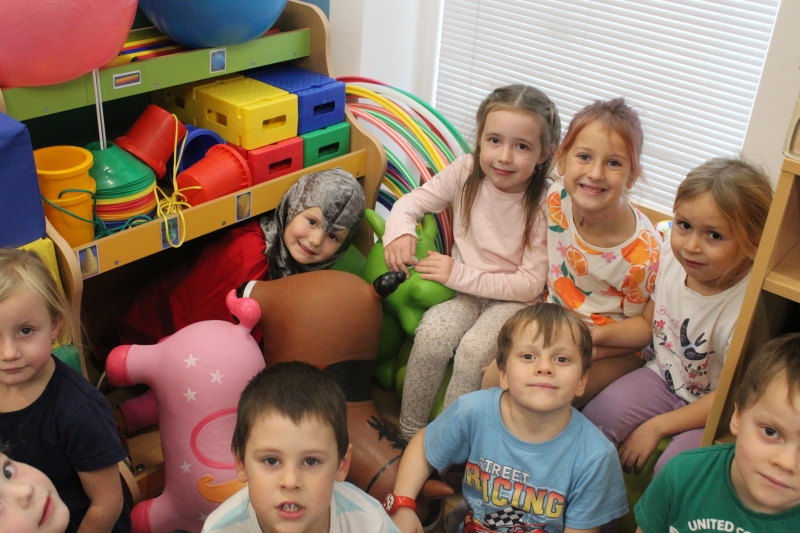 Děti si poslechly legendu o svatém Martinovi. Zahrály si několik pohybových her, zacvičily si jako koníci, pro koníky postavily stáj z cihliček, hledaly Martina a podívaly se na příběh o svatém Martinovi.