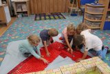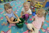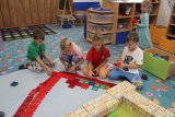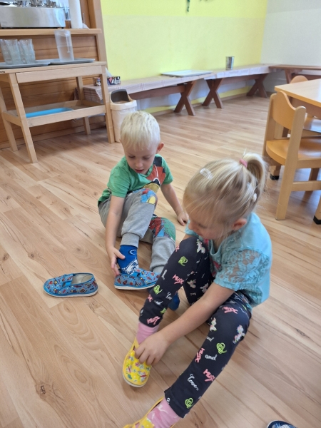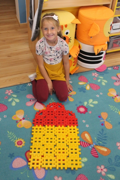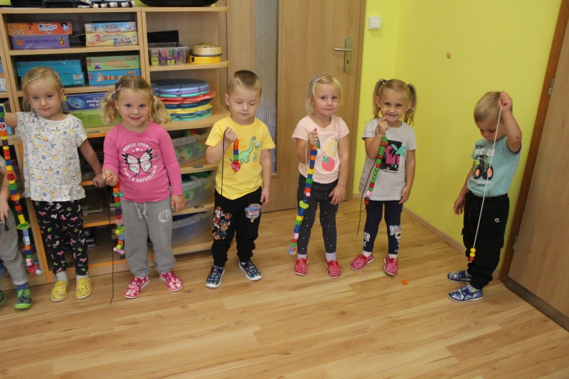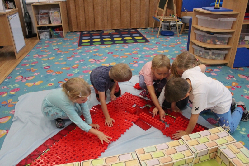 Malé děti poznávaly svoje značky, seznamovaly se se školkovými pravidly, stavěly školku z kostiček, trénovaly obouvání bačkorek, navlékaly korálky. Velké děti cvičily prstíky při loupání kukuřice, měly hodinu psaní, poznávaly místnosti ve školce a určovaly, co do které patří, stavěly školku z různých stavebnic, zpívaly písničky a doprovázely se na dětské hudební nástroje. Společně hrály mnoho pohybových her.